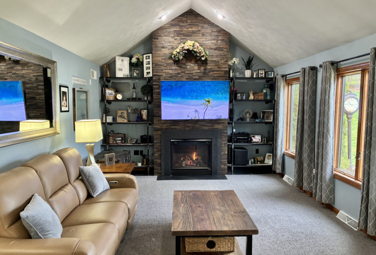 Take a trip to the Lily Brooke community, step through the impressive two-story foyer and discover a thoughtfully designed and constructed Schuster layout, perfect for both relaxing and hosting. Those who know Schuster homes, know they’re built to much higher standards than the competition. The main level features a spacious family room with dramatic cathedral ceilings, built-in shelving, and a stunning remote-controlled gas fireplace framed by a floor-to-ceiling architectural wood surround and Bose speakers for immersive sound.