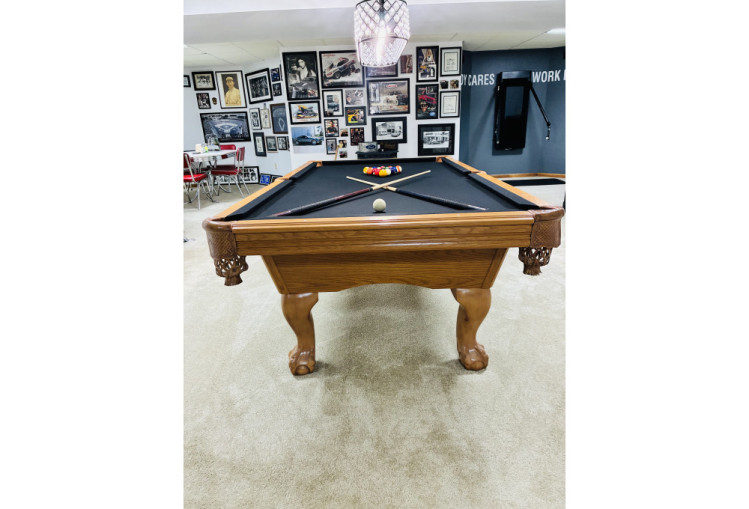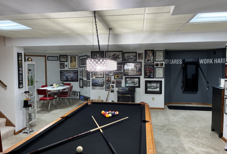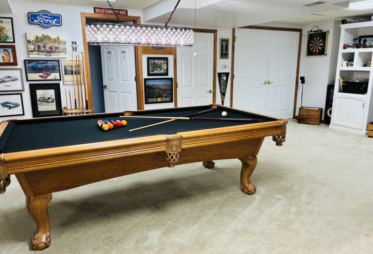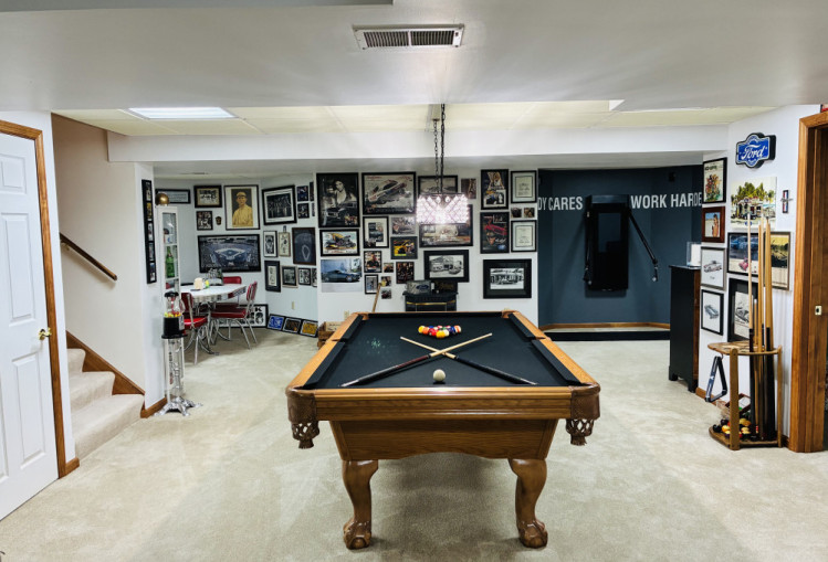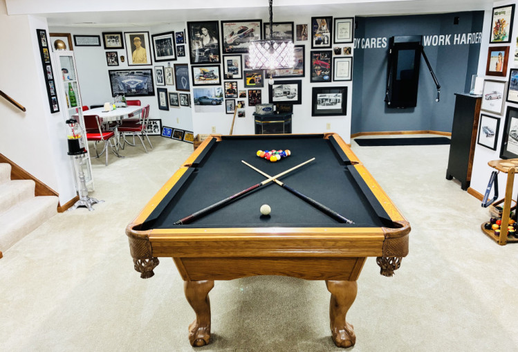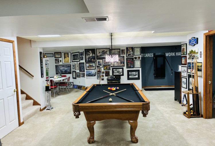 The finished basement is an entertainer’s dream — nearly 950 sq ft of versatile game room space complete with LED lighting and a convenient kitchenette. Double walk-out doors bring in natural light and easy outdoor access, while a separate 300 sq ft unfinished storage area keeps things organized.